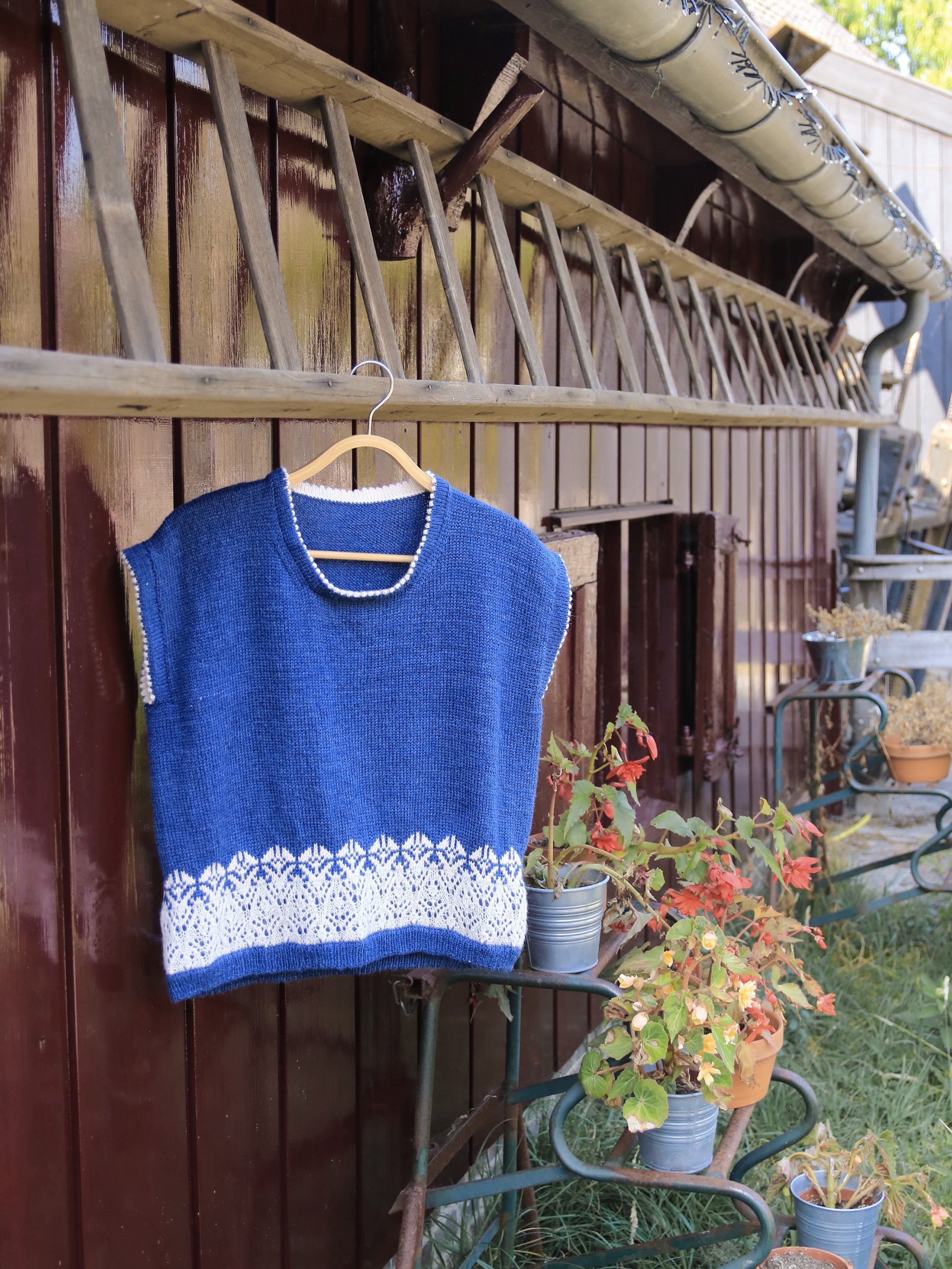 Get it nowThe LIBRA MOON TEE has taken a long time to design and is project that is close to my heart. It's a light, sleeveless top worked bottom-up with clever construction. A lace panel is worked flat, then flipped to pick up stitches for the backpanel. When both panels are complete, they are joined seamlessly using a technique similar to a three-needle join, with the first round of stranded colorwork incorporated directly into the join for a visually striking transition.