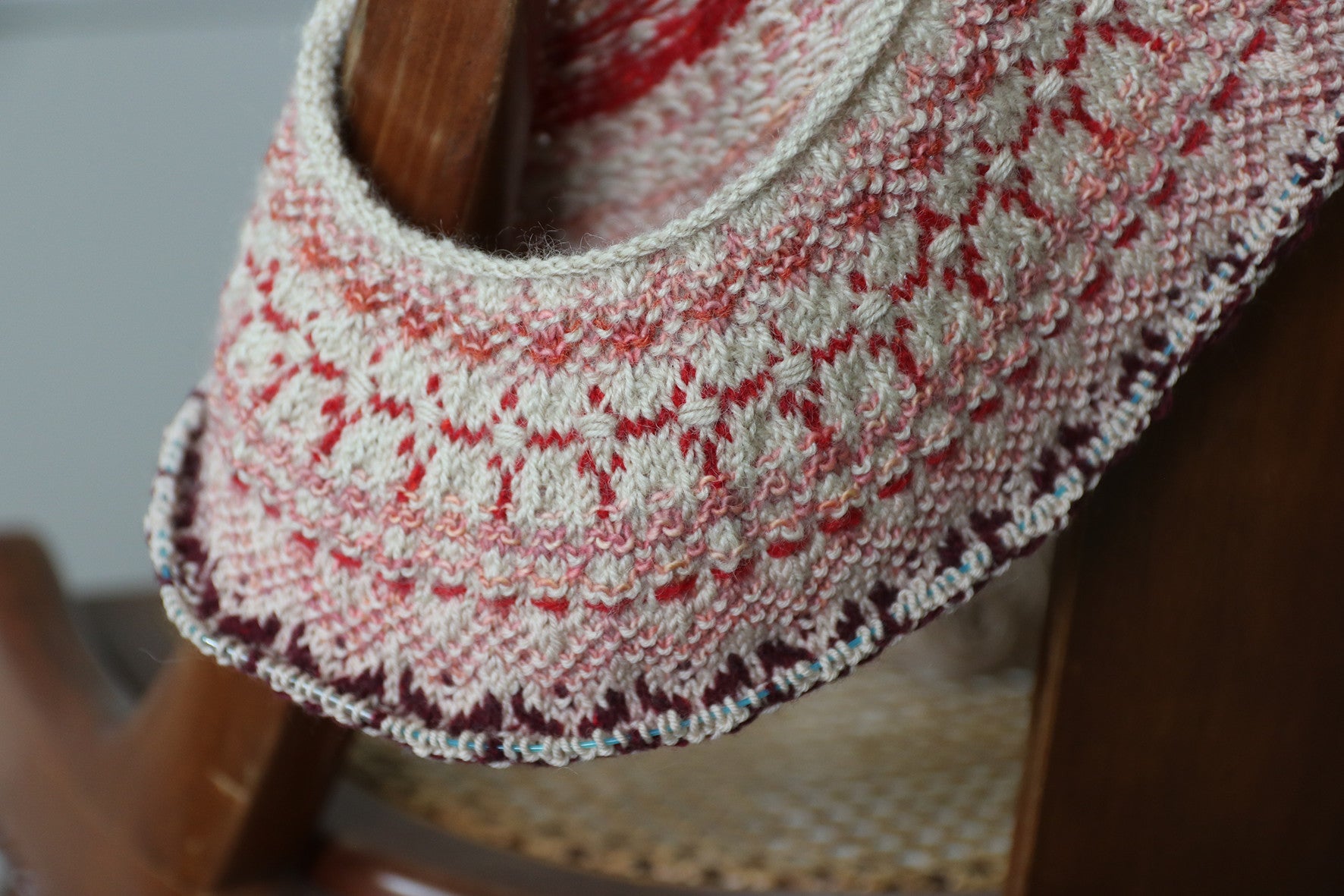 Get it nowThe LIBRA MOON TEE has taken a long time to design and is project that is close to my heart. It's a light, sleeveless top worked bottom-up with clever construction. A lace panel is worked flat, then flipped to pick up stitches for the backpanel. When both panels are complete, they are joined seamlessly using a technique similar to a three-needle join, with the first round of stranded colorwork incorporated directly into the join for a visually striking transition.